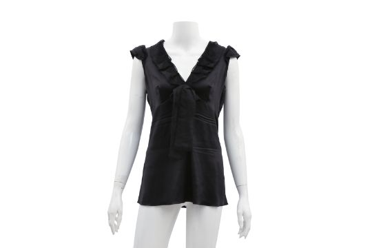 Dolce & Gabbana Black Silk Ruffle Top, labelled size 42, 1990's