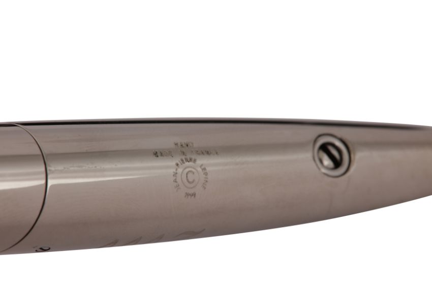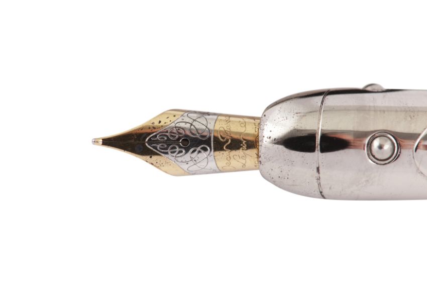 Jean Pierre didn’t want to incorporate the ink-holder inside the pen so that the user wouldn’t have to dip the end in ink. The ink-holder is external so that ink can be sucked from an ink-bottle, the holder can then be screwed onto the pen, and ink injected into it.