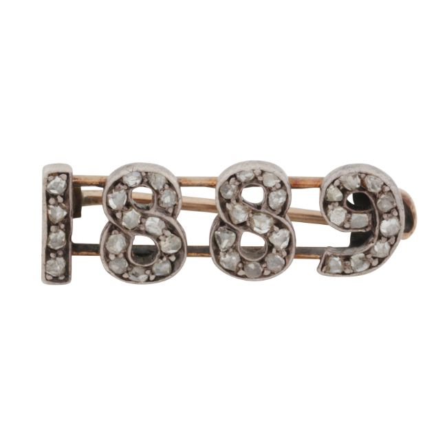 Of openwork design, set with rose-cut diamonds, mounted in white and yellow metal, unmarked and untested, length 2.6cm, weight 2.8grs