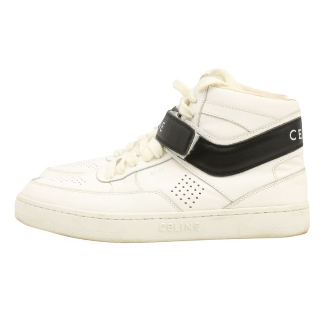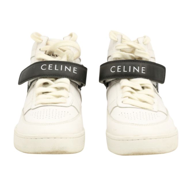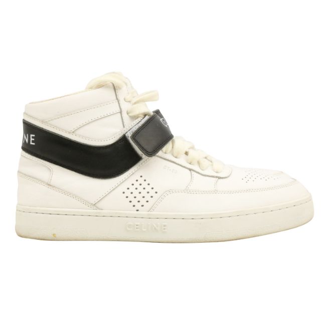Celine White Lace Up Sneaker, calf leather, black trim, labelled size 40 (UK 7)