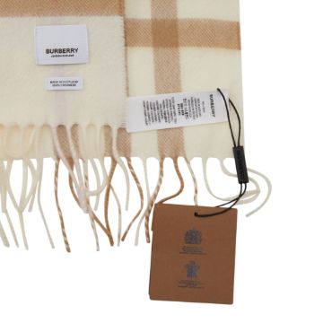 Burberry Ivory Cashmere Giant Check Scarf, alabaster check, fringe edge