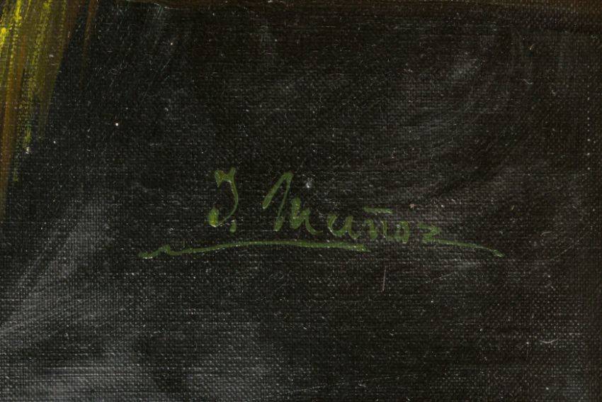 José Muñoz Artés was a Spanish painter from Alhama de Almería, celebrated for his realist still lifes and bodegón compositions rooted in Andalusian tradition. He studied at the Escuela de Artes y Oficios in Almería between 1949 and 1951, winning top prizes in drawing, and was profoundly influenced by the painter Moncada Calvache, with whom he shared a close personal and artistic relationship. Their collaboration and shared vision helped shape what became known as the “Escuela alhameña,” a regional school of painting grounded in classical realism. Muñoz Artés worked alongside other artists in the region, often participating in collective exhibitions, including a significant show in Madrid in 1988 honouring Nicolás Salmerón Alonso. His works, such as Uvas y granadas (1958), Chocolatera de cobre y frutas (1965), and Damasco Verde (1998), are held in both private and institutional collections, and in 2004, the municipality of Alhama de Almería hosted an anthological exhibition featuring over sixty of his paintings to commemorate fifty years of artistic contribution. His art remains a testament to technical skill, local heritage, and a lifelong dedication to the still-life genre.