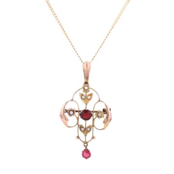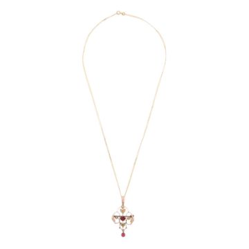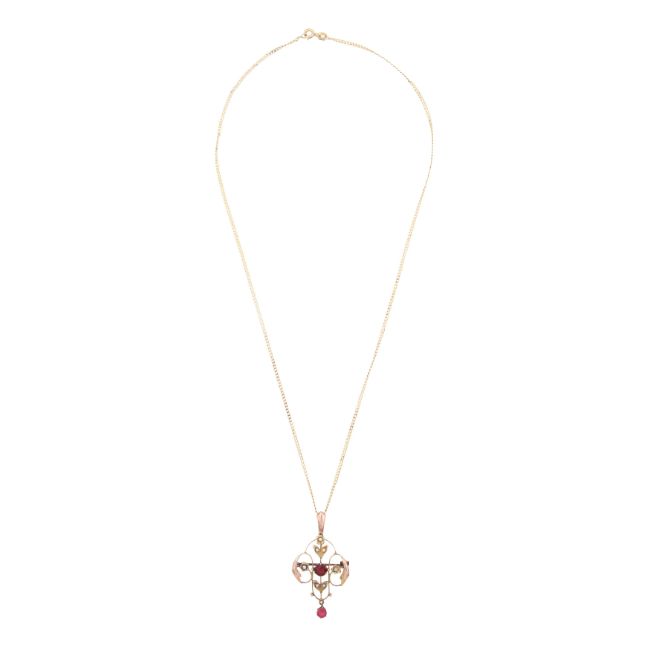 Of openwork floral design, suspended from a flattened curb-link chain, yellow metal pendant stamped 9ct, chain mounted in 9 ct yellow gold, UK hallmark, lengths: pendant 4.7cm, chain 51.0cm, weight 3.8grs
