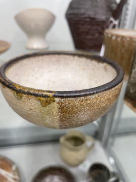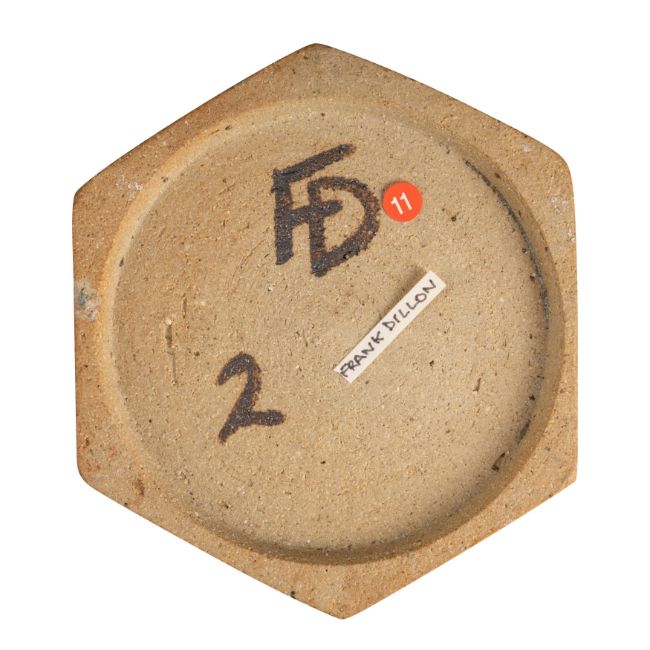 Including Frank Dillon bowl, 12.5cm high, jug purchased 1955, hexagonal pot purchased 1960, 7cm high, small bowl marked '28' to underside, 4.5cm high, white footed bowl purchased 1960, 9cm high, ribbed bowl marked '27' to underside c.1960, 6.5cm high and a small pin dish painted 'FD 28' to underside, and all other items by Brian Holt including a teapot with dragon mask spout, 25.5cm from spout to handle.