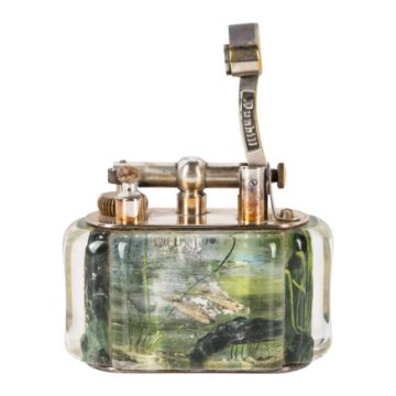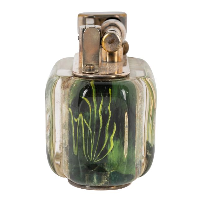 Lucite, reverse intaglio, silver-plated brass